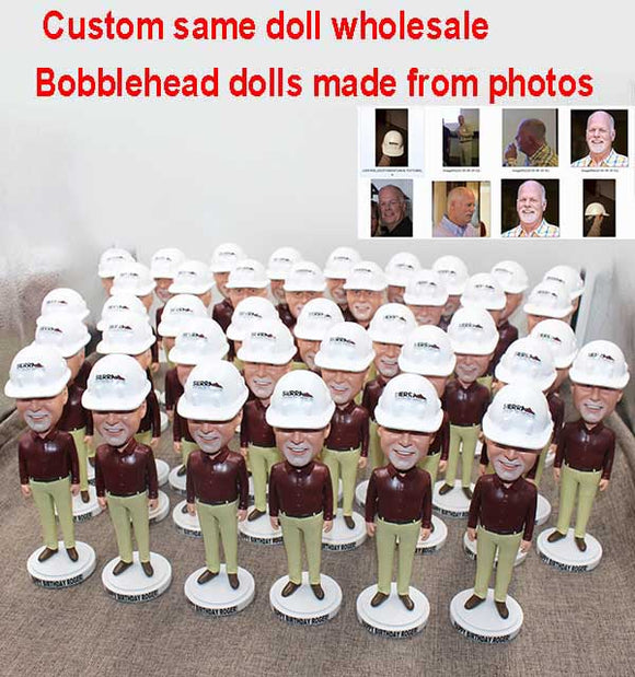 Fully Handmade Custom Personalized Bobbleheads from your Photo single or double or team member.Just upload your photos and select the hair, eyes and skin color for your bobblehead.