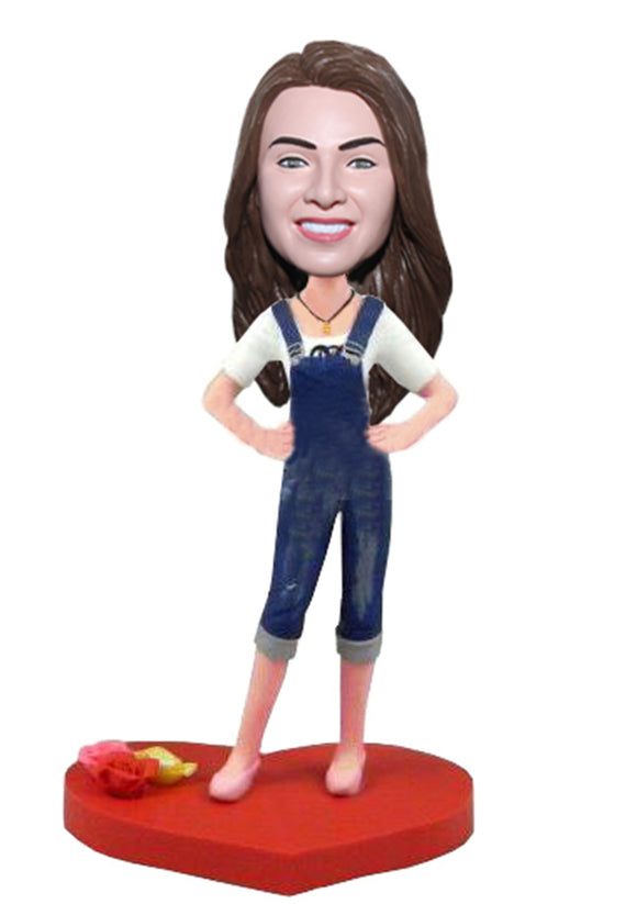 Custom Denim Jumpsuit Bobblehead For Your Girlfriend Look Alike Bobble Head