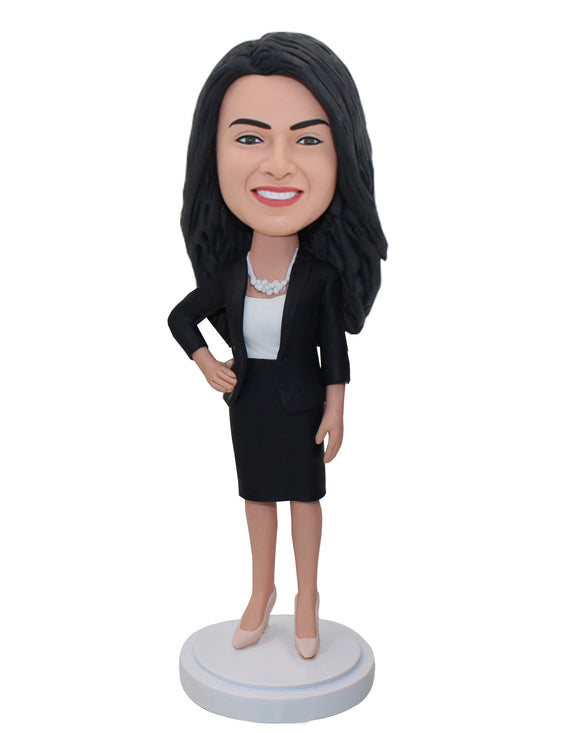 Custom Boss Bobblehead Female From Photo, Cool Gifts For Office Staff To Male A Bobbleheads, Customized Female Workplace Bobblehead. We can make all style bobblehead as you want.If you do not like our pre-made model display on our website,it doesn't matter, you can choose "Head to Toe Custom", you only need to upload your facial picture,action picture,clothes picture or drawing picture, then you can get your customized bobbleheads realizing your best likeness.